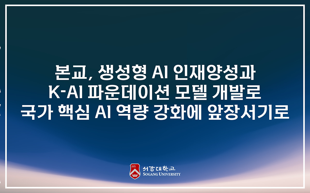 또한 본교는 업스테이지, 노타AI, 레블업 등 국내 최고 수준의 생성형 AI 기술 기업들과 함께 ‘독자 AI 파운데이션 모델 개발 프로젝트’에도 선정되었다. 이 사업은 2.5년간 각 컨소시엄 당 1,650억 원 규모의 통합형 지원을 통해 국가대표 K-AI 모델 구축기관을 육성하는 사업으로, 서강대는 국가 대표 파운데이션 모델의 멀티모달리티, 신뢰성, 안정성 강화 및 도메인 특화형(vertical) 모델 개발에 참여한다.